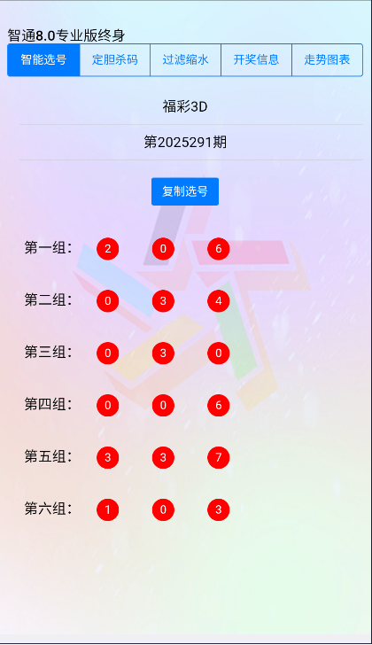智赢科技采用霍华德“聪明组合”和“平衡选号”理论及方法,由智赢科技软件工程师和数据架构分析师共同开发,软件通过阿里云服务器采集官网开奖数据,在精密的逻辑算法下推测下期开奖号范围,优化投注组合,减少投注风险,本软件智能分析,操作简单,计划适用于双色球、大乐透、福彩3D、七星彩、快乐8、排列三、排列五等全国正规的福彩体彩。