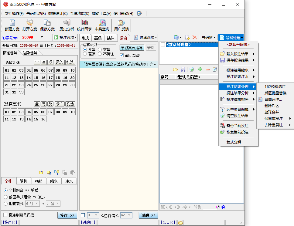 幸运500双色球是目前最专业市面上功能全面, 运行速度最快的软件,操作简洁功能实用性高,它采用科学的缩水方式、合理的筛选过滤方法,使您以最少的投入,达到最高的期望值