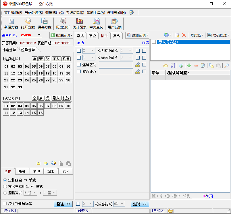 本软件适用于双色球玩法(前区33选6,后区16选1)。