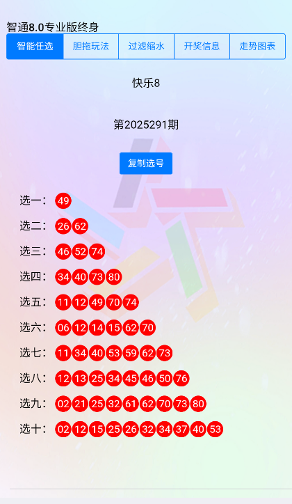 智赢科技采用霍华德“聪明组合”和“平衡选号”理论及方法,由智赢科技软件工程师和数据架构分析师共同开发,软件通过阿里云服务器采集官网开奖数据,在精密的逻辑算法下推测下期开奖号范围,优化投注组合,减少投注风险,本软件智能分析,操作简单,计划适用于双色球、大乐透、福彩3D、七星彩、快乐8、排列三、排列五等全国正规的福彩体彩。