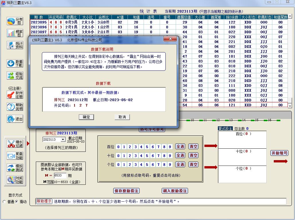V6.0升级内容:不定位胆拖由1组增加至5组;保存后增加查看按钮;并优化了部分算法,运算速度更快