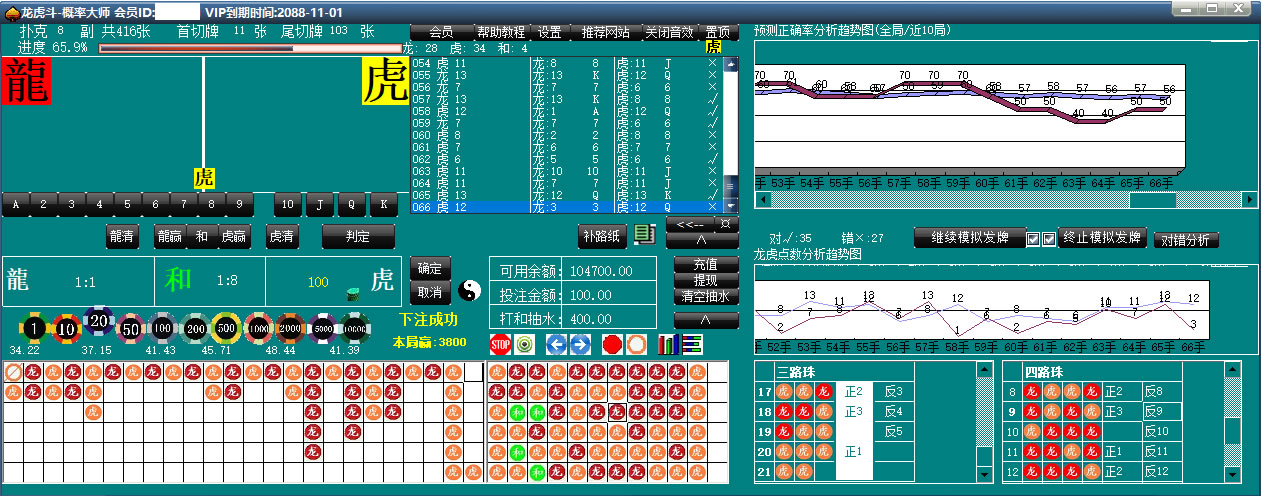 • 概率分析大师是当应世界上最完善的龙虎斗概率下注分析工具